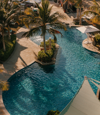 Tucked between mountains and sea with a true hidden-gem feel, Jumeirah Muscat Bay is the definition of escape. Drift between serene pools and shaded loungers before slowing things down with yoga on the beach, sunset dining, or a peaceful swim. The calm cove setting, elevated views, and laid-back rhythm make it perfect for couples, families, and anyone seeking a wellness fix with a view.