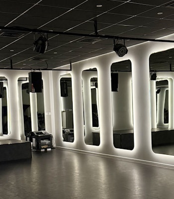 Large windows and mirrors keep the space open and motivating, while the studio design adds a sense of focus and intensity during classes. The overall vibe is powerful and polished, striking a balance between serious training and lifestyle appeal.