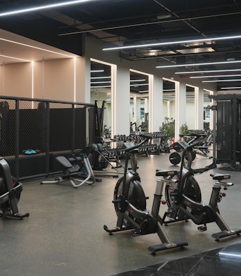 If you prefer a space that feels quieter and more aligned, this is your go-to. Soft lighting, a spacious layout with clear zones for strength and cardio, and mirror-lined walls that keep the vibe clean, and the content, it’s a setup that brings relaxed energy you can confidently settle into.