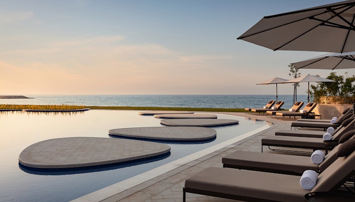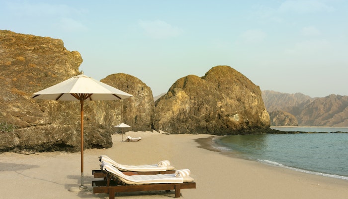 Set within a picture-perfect sheltered bay between mountains and sea, Jumeirah Muscat Bay feels naturally tranquil. The beach here is peaceful and spacious, making it an inviting place to pause and take in the view.